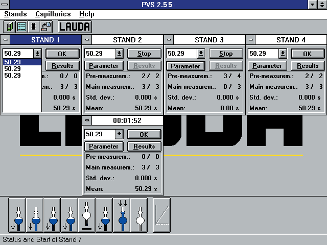 S5即是PVS系统的实际测量台。独立的S5测量台,其头部包括弯液面光电探测器以及整个微处理器。微处理器控制测量过程,包括测量头内部的微型泵和阀。使用程序控制的近红外光感应器,对样品流动时间的测量可以精确到毫秒。强力的微型泵可以将样品向上压入测量球,测量台头部的阀可以耐化学腐蚀,由此实现了可靠的连续性的操作。